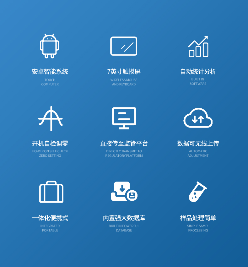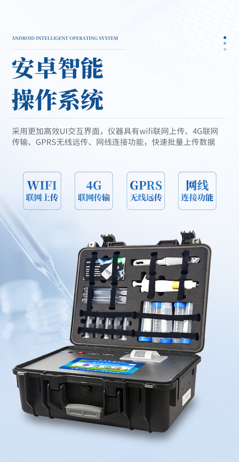 1、安卓智能操作系統(tǒng),采用更加高效和人性化操作,儀器具有wifi聯(lián)網(wǎng)上傳、4G聯(lián)網(wǎng)傳輸、GPRS無線遠(yuǎn)傳、網(wǎng)線連接功能,快速上傳數(shù)據(jù)。