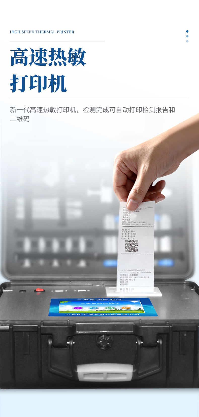 3、新一代高速熱敏打印機(jī),檢測完成可自動打印檢測報告和二維碼。