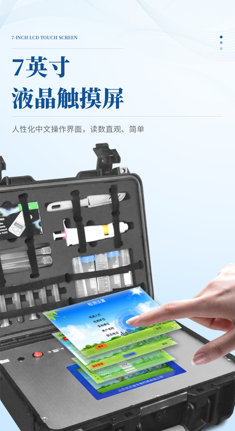 2、顯示方式:7英寸液晶觸摸屏顯示,人性化中文操作界面,讀數(shù)直觀、簡單。