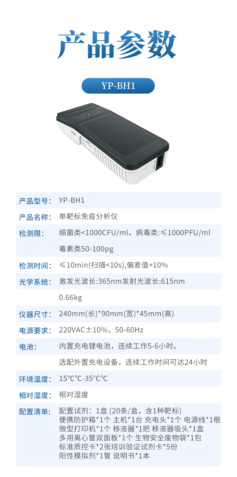 便攜防護(hù)箱*1個(gè) 主機(jī)*1臺(tái) 充電頭*1個(gè) 電源線*1根 微型打印機(jī)*1個(gè) 移液器*1把 移液器吸頭*1盒 多用離心管雙面板*1個(gè) 生物安全廢物袋*1包 標(biāo)準(zhǔn)質(zhì)控卡*2張培訓(xùn)驗(yàn)證試劑卡*5份 陽性模擬劑*1管 說明書*1本