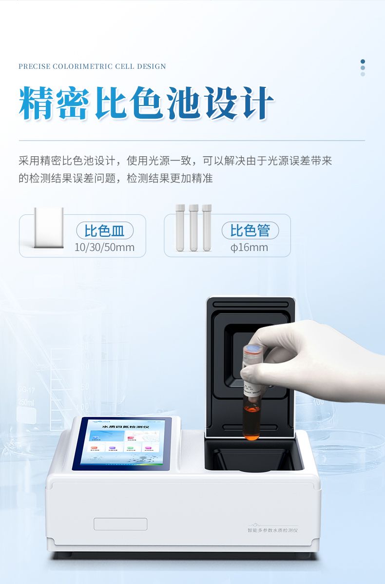 5、支持10mm、30mm、50mm皿比色和φ16mm管比色等比色方式,多元選擇,確保測量的準(zhǔn)確性;