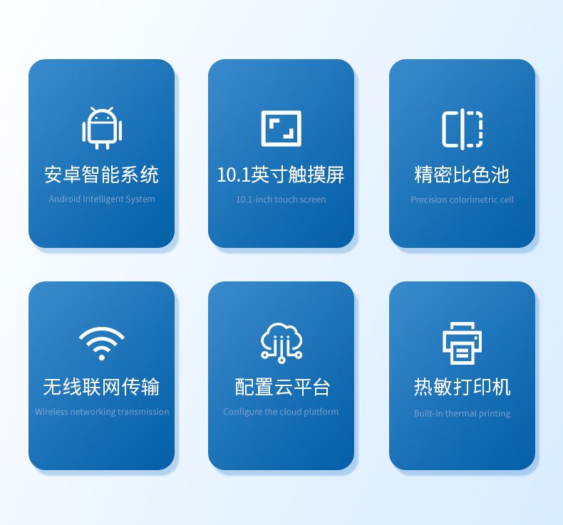 3、采用精密比色池設(shè)計,使用光源一致,可以解決由于光源誤差帶來的檢測結(jié)果誤差問題,檢測結(jié)果更加精準(zhǔn)。