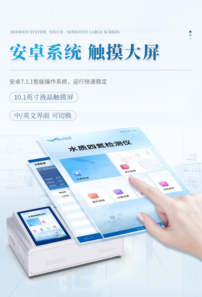 手持式水質四氮檢測儀主要檢測水體中的氨氮、硝酸鹽氮、亞硝酸鹽氮、總氮含量;參考國標以及環(huán)境標準研發(fā)設計制造,儀器配備高清晰度彩色液晶觸摸顯示屏,Android智能操作系統(tǒng),中文顯示界面,中英文鍵盤,人性化操作,使用更簡單;