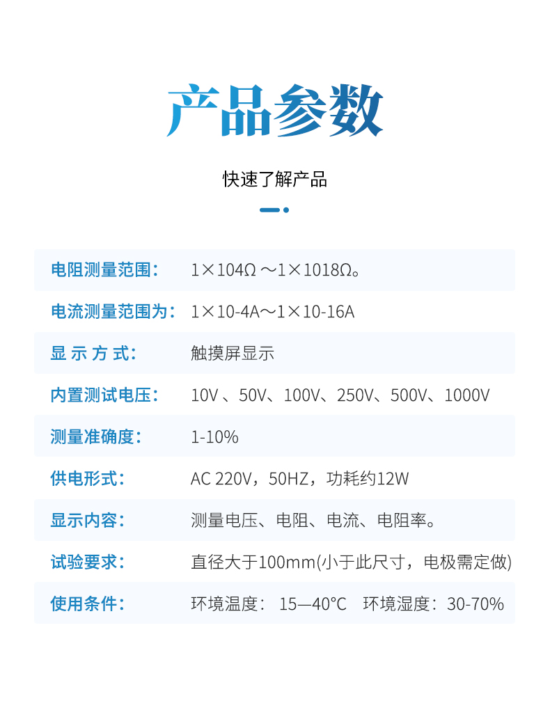 電阻測(cè)量范圍: 1×104Ω ~1×1018Ω。