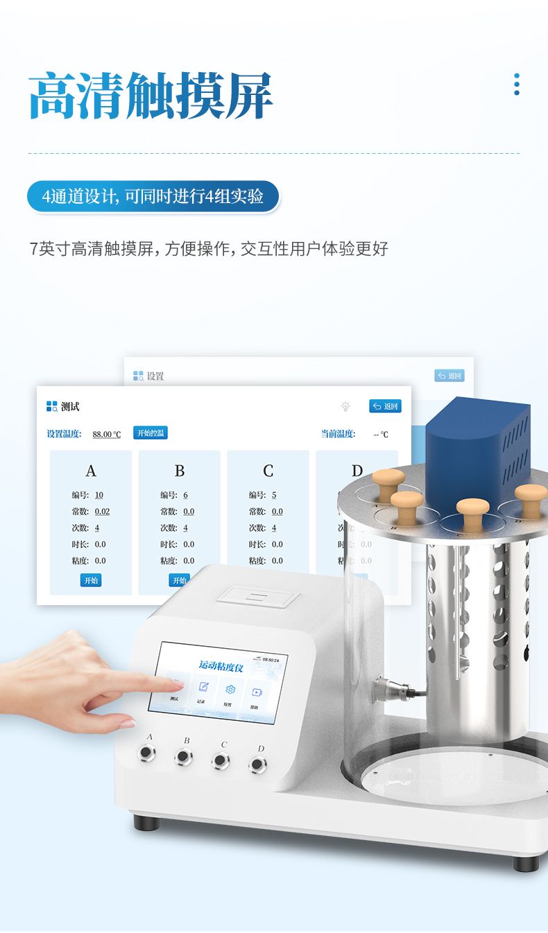 本產(chǎn)品石油產(chǎn)品運(yùn)動(dòng)粘度自動(dòng)測(cè)定儀是依據(jù)國(guó)家標(biāo)準(zhǔn)《GB265-88石油產(chǎn)品運(yùn)動(dòng)粘度測(cè)定法》設(shè)計(jì)制造的專(zhuān)用測(cè)試儀器,適用于測(cè)定液體石油產(chǎn)品的運(yùn)動(dòng)粘度。本儀器具有計(jì)時(shí)試樣運(yùn)動(dòng)時(shí)間,自動(dòng)計(jì)算運(yùn)動(dòng)粘度的最終結(jié)果。本方法適用于測(cè)定液體石油產(chǎn)品(指牛頓液體)的運(yùn)動(dòng)粘度,其單位為m2/s,通常在實(shí)際中使用為mm2/s。動(dòng)力粘度可由測(cè)得的運(yùn)動(dòng)粘度乘以液體的密度求得。本方法是在某一恒定的溫度下,測(cè)定一定體積的液體在重力下流過(guò)一個(gè)標(biāo)定好的玻璃毛細(xì)管粘度計(jì)的時(shí)間,粘度計(jì)的毛細(xì)管常數(shù)與流動(dòng)時(shí)間的乘積,即為該溫度下測(cè)定液體的運(yùn)動(dòng)粘度。該溫度下運(yùn)動(dòng)粘度和同溫度下液體的密度之積為該溫度下的動(dòng)力粘度。