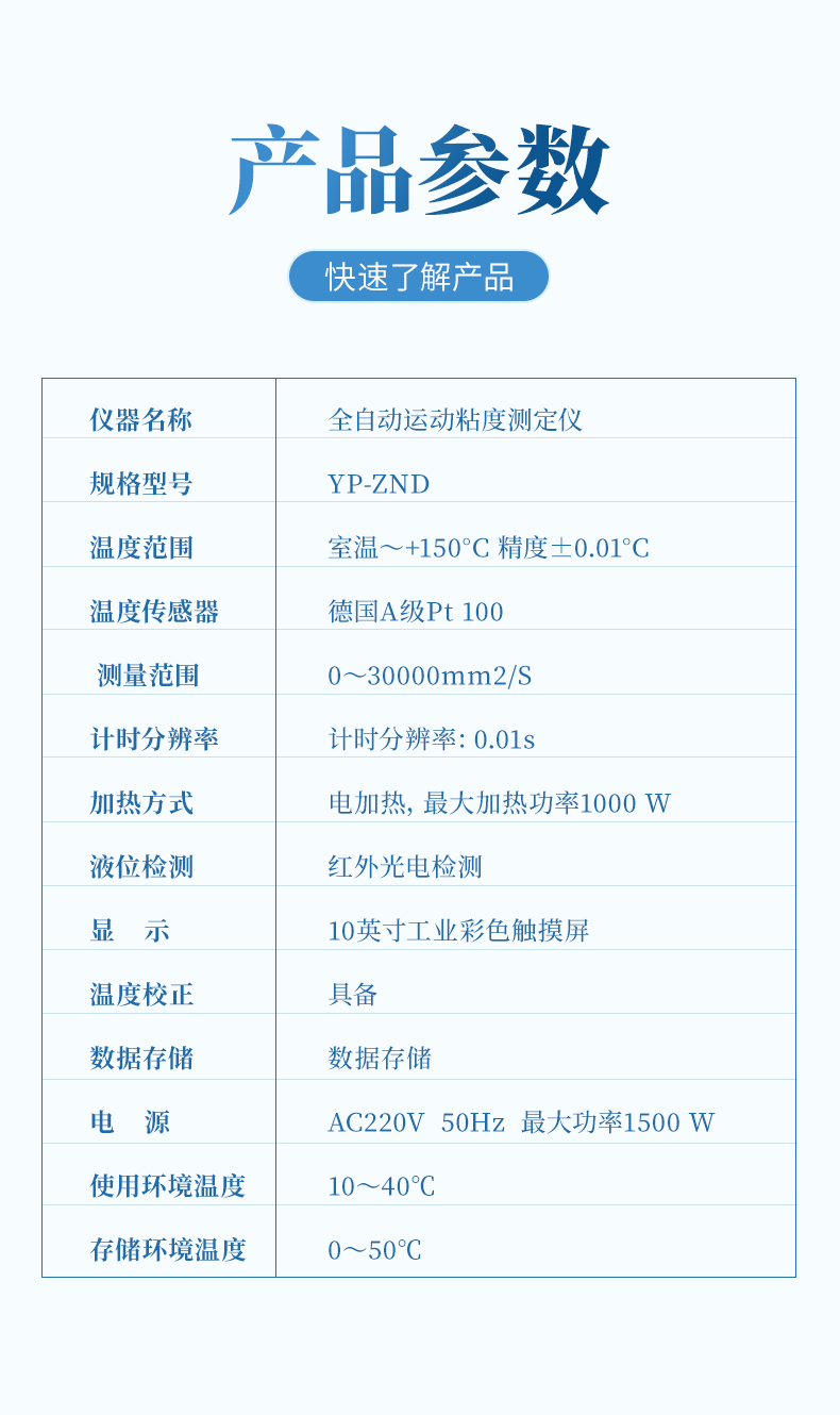 YP-ZND全自動(dòng)運(yùn)動(dòng)粘度測(cè)定儀是按照GB/T265、ASTM D445的標(biāo)準(zhǔn)要求研制開(kāi)發(fā),用于測(cè)定液體、石油產(chǎn)品的運(yùn)動(dòng)粘度,結(jié)構(gòu)設(shè)計(jì)精巧、美觀、實(shí)用、操作舒適。一鍵快速恒溫、油樣上吸、粘度檢測(cè)、粘度值計(jì)算、打印、粘度管清洗、烘干粘度管,不需要人工操作,儀器自動(dòng)完成,一次可同時(shí)做2個(gè)樣品的實(shí)驗(yàn),提高工作效率;廣泛應(yīng)用于藥典、石油、化工、科研、計(jì)量、商檢、電力等部門。