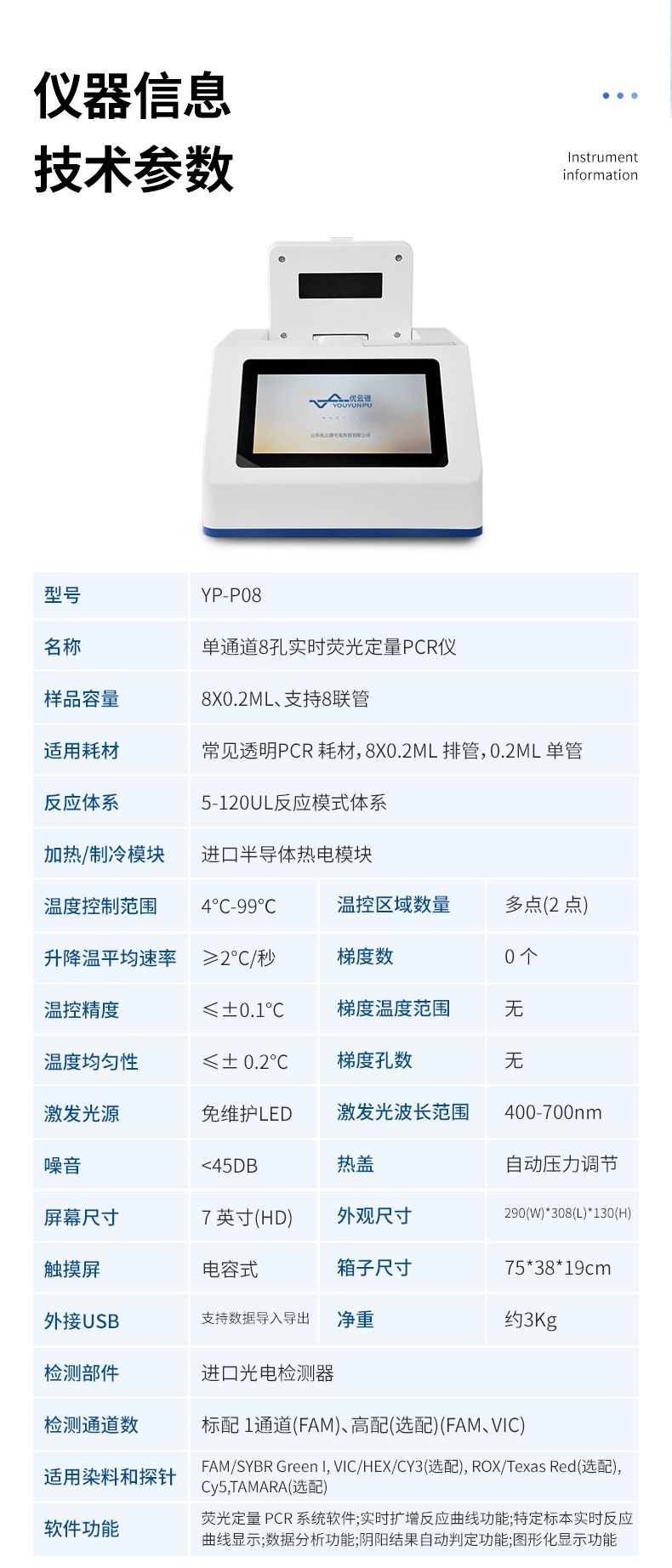 是一種非常便攜的方式提供8個樣本的實時熒光定量 PCR檢測,適合動植物疫病,食品安全,生物科研實驗室等日 常低通量檢測需求。儀器可放置于快檢箱,保障現(xiàn)場快速分子 檢測需求。
