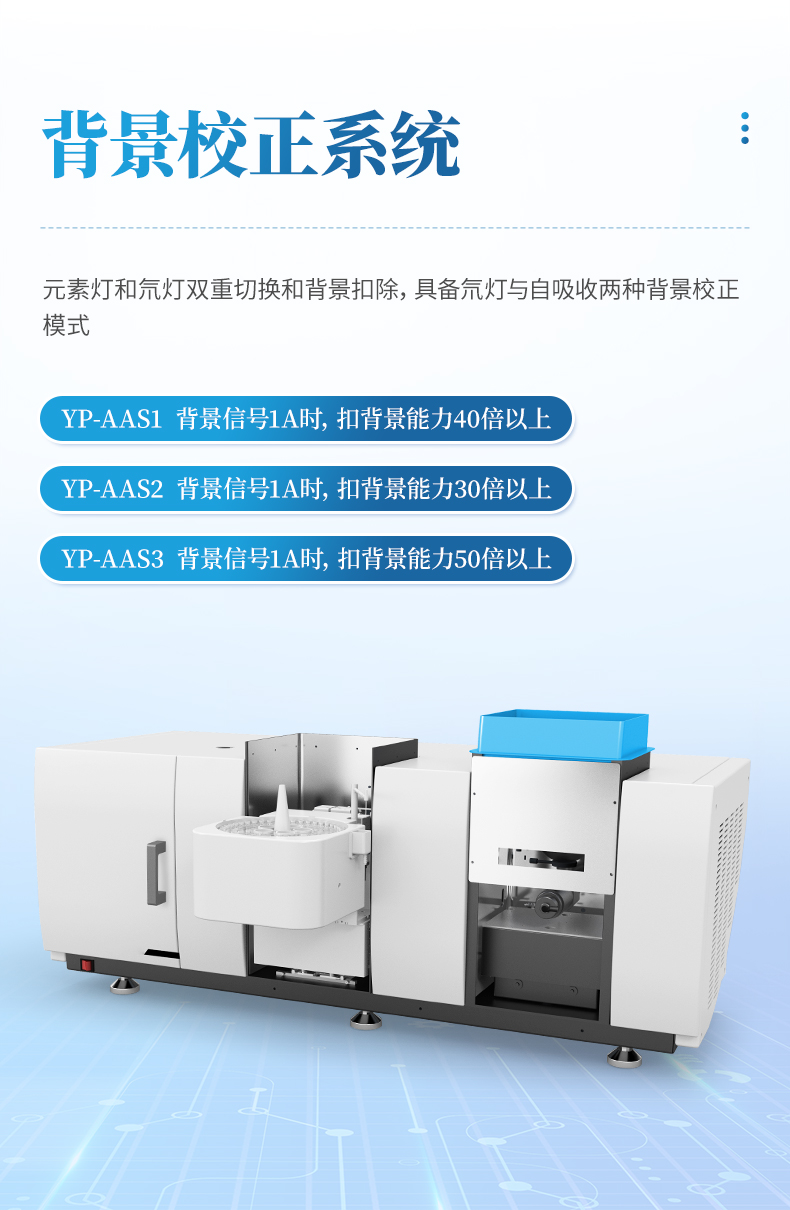 具備氘燈與自吸收兩種背景校正模式,背景信號 1A 時,扣背景能力 30 倍以上。