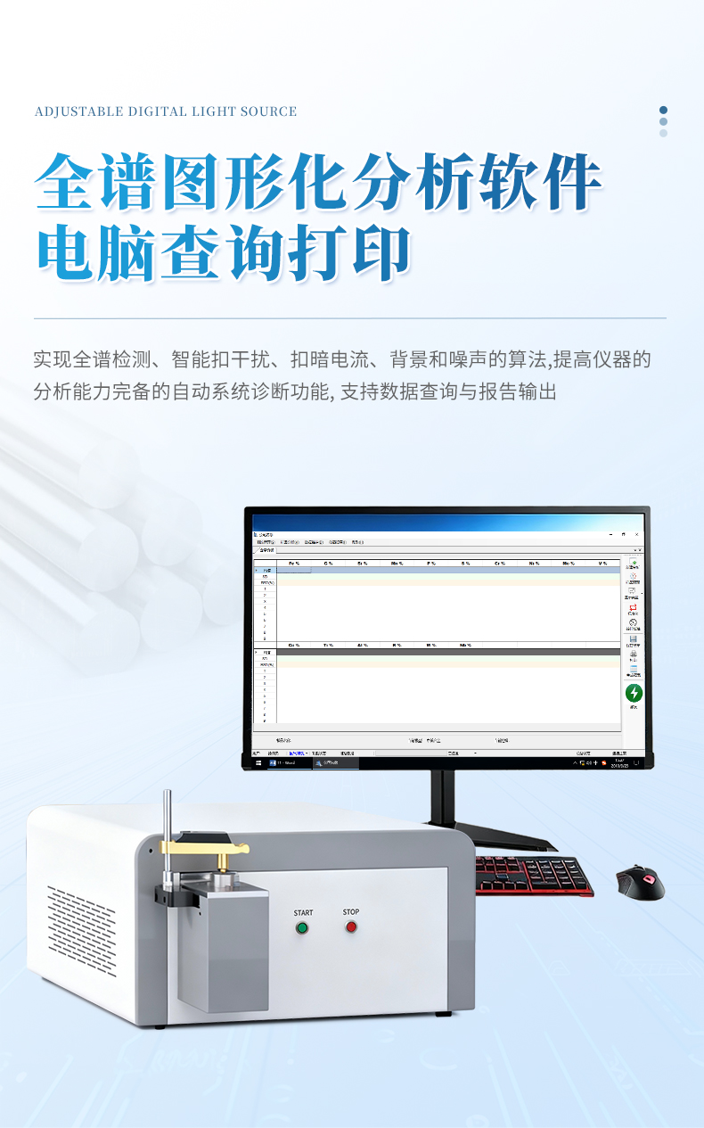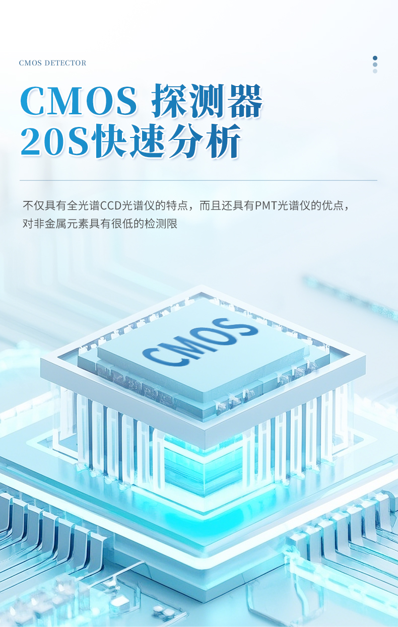 直讀光譜使用日本Hamamatsu公司最先進的CMOS信號采集元件,每個CMOS可以分別設(shè)置火花的數(shù)量。它采用真空光室設(shè)計和全數(shù)字激發(fā)光源。該CMOS光譜儀不僅具有全光譜CCD光譜儀的特點,而且還具有PMT光譜儀的優(yōu)點,對非金屬元素具有很低的檢測限。整機的設(shè)計合理。它還具有操作簡便,測試精度高,長期穩(wěn)定等優(yōu)點。