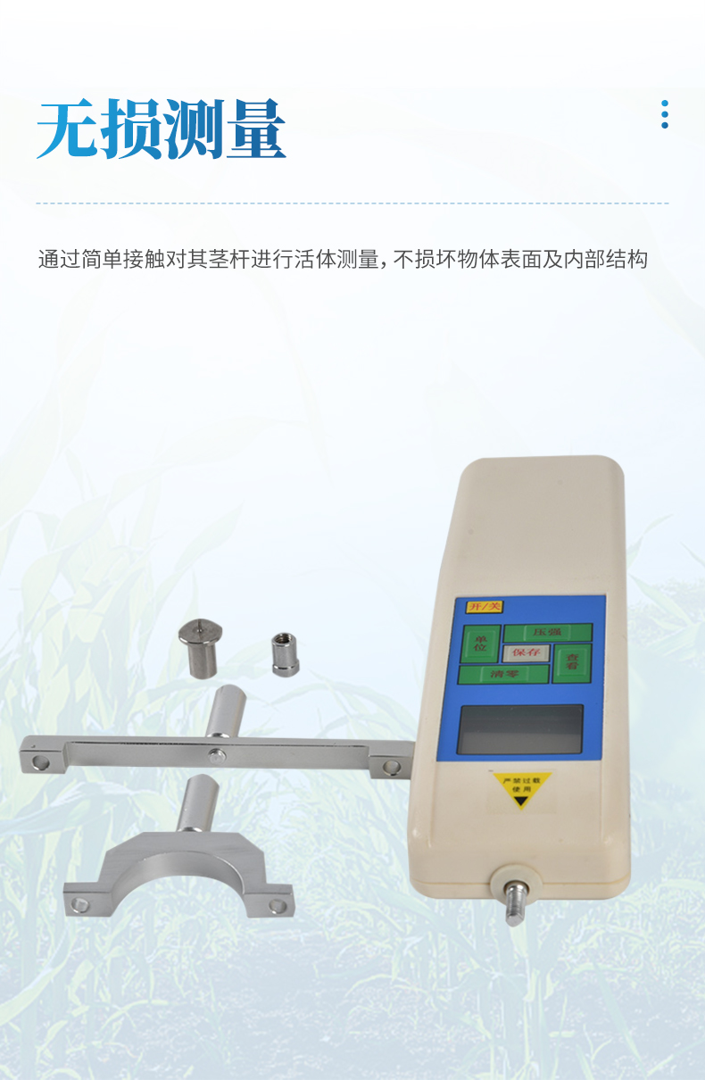 植物抗倒伏測定儀是決定農(nóng)作物抗倒伏能力的一個關(guān)鍵因素,玉米,高梁、煙草等的植物的倒伏給農(nóng)作物的機械收割造成很大的困難。造成大量的浪費。另外,農(nóng)作物的倒伏導(dǎo)致光照不充分,使其生產(chǎn)量受到極大的限制。在作物生長的各個階段對其莖桿進行活體測量,進而根據(jù)莖桿纖維層的抗彎阻力與抗倒伏能力的相關(guān)性對群體測量數(shù)據(jù)進行統(tǒng)計處理,對作物的栽培和育種具有重要意義。