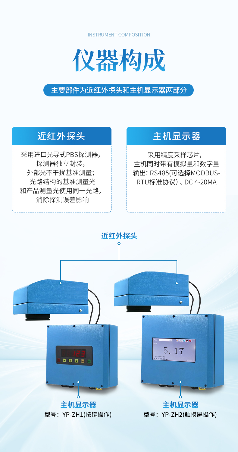 近紅外探頭:采用進(jìn)口光導(dǎo)式PBS探測(cè)器,探測(cè)器獨(dú)立封裝,外部光不干擾基準(zhǔn)測(cè)量;光路結(jié)構(gòu)的基準(zhǔn)測(cè)量光和產(chǎn)品測(cè)量光使用同一光路,消除探測(cè)誤差影響。