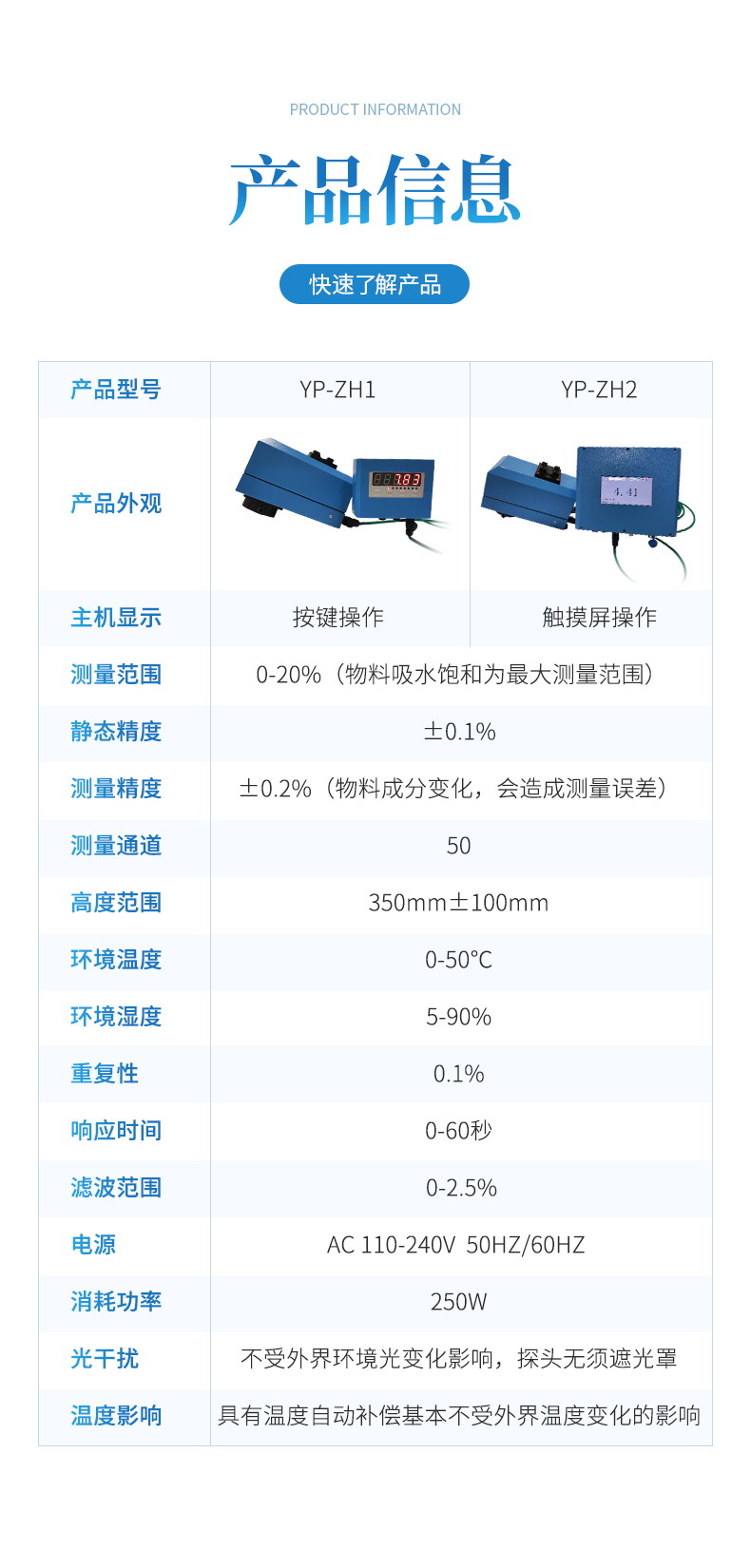 測(cè)量范圍 : 0-20%(物料吸水飽和為最大測(cè)量范圍)
