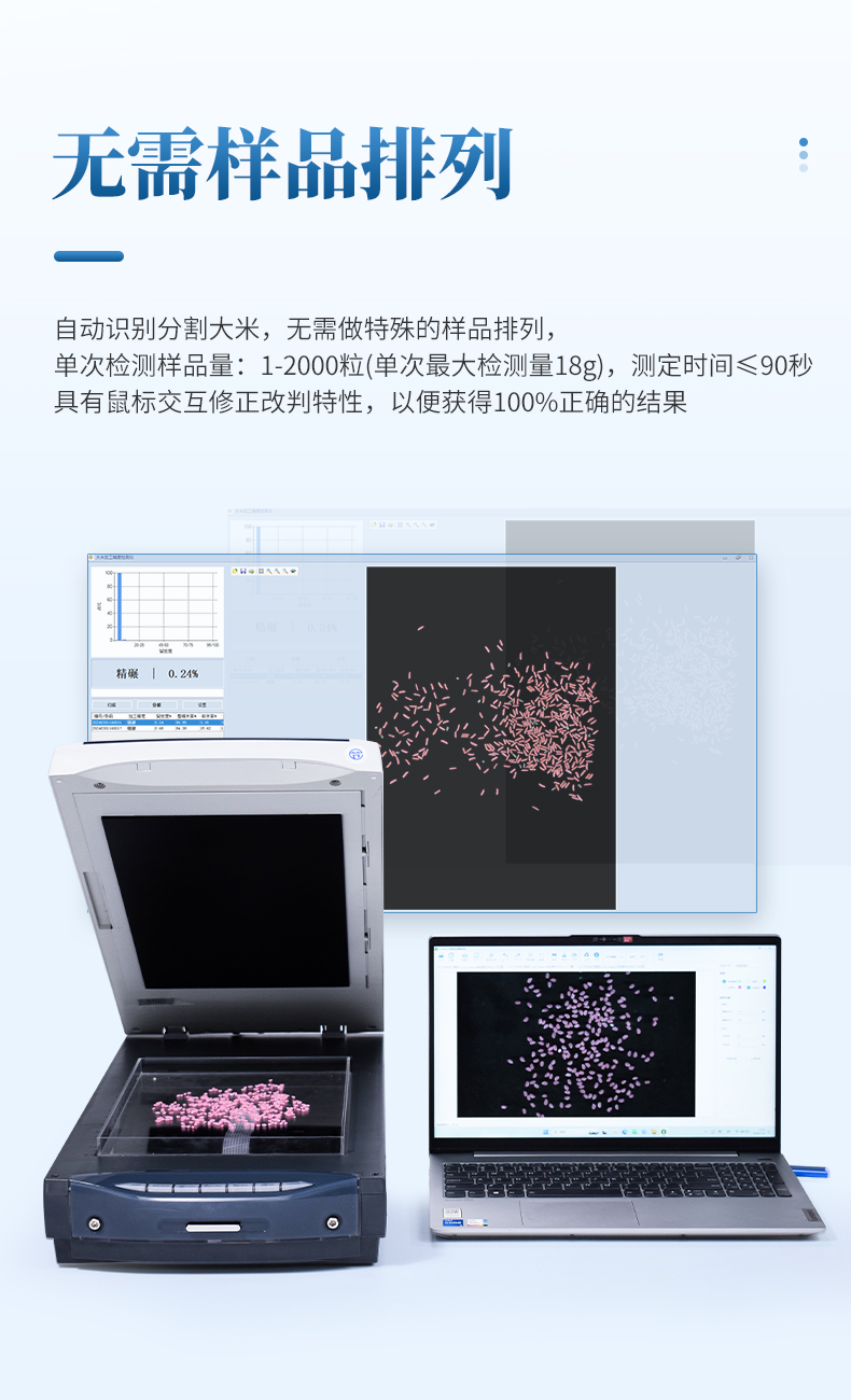 5、自動識別分割大米,無需做特殊的樣品排列,單次檢測樣品量:1-2000粒(單次最大檢測量18g),測定時間≤90秒。具有鼠標(biāo)交互修正改判特性,以便獲得100%正確的結(jié)果。