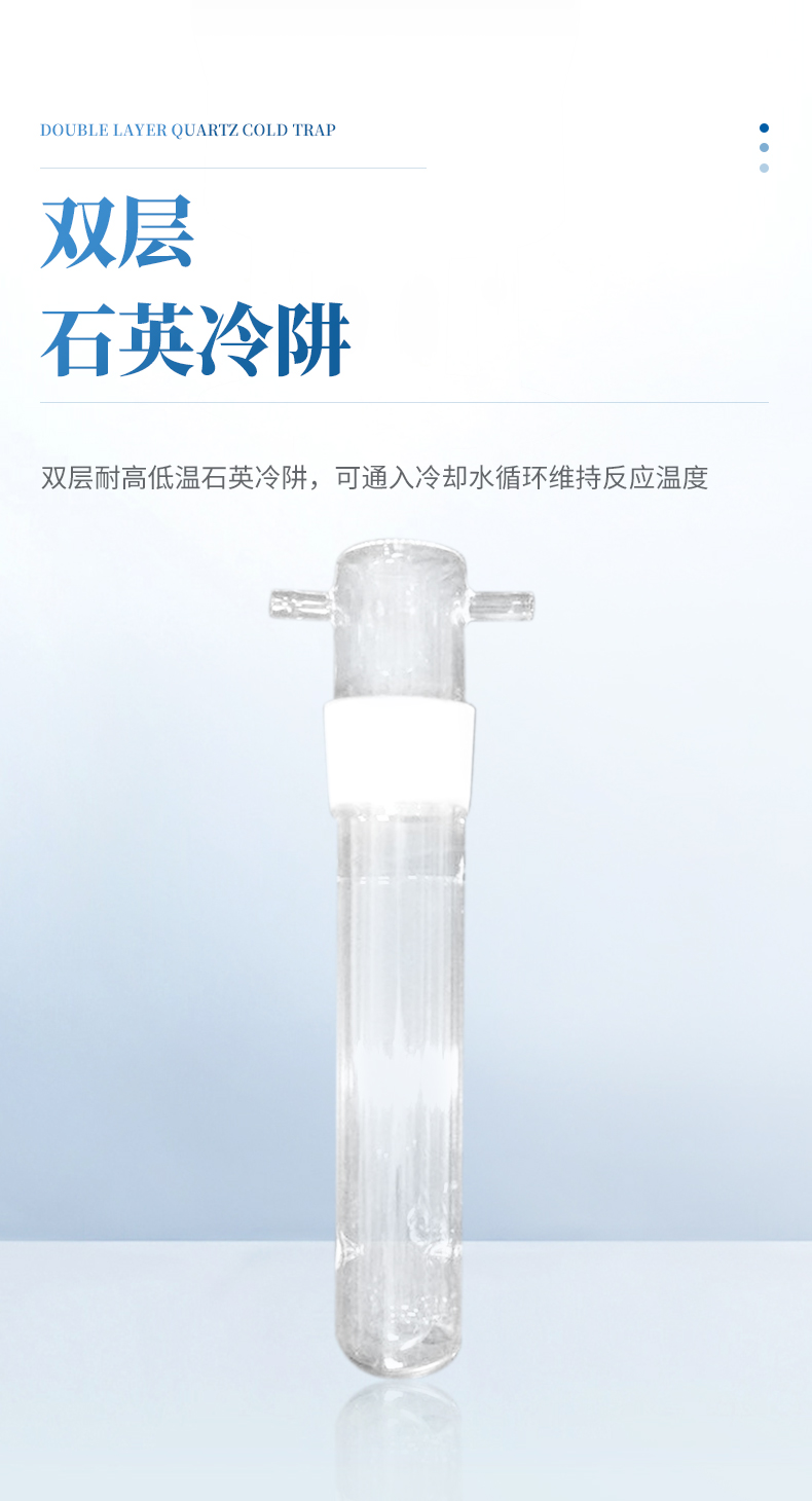 8.雙層耐高低溫石英冷阱,可通入冷卻水循環(huán)維持反應(yīng)溫度