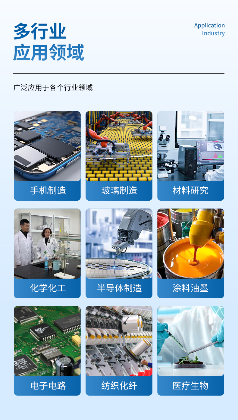 可廣泛應用于材料研究、工業(yè)涂層、手機制造、生物醫(yī)藥、電子電路、紡織纖維、石油開采、航空航天等領域。