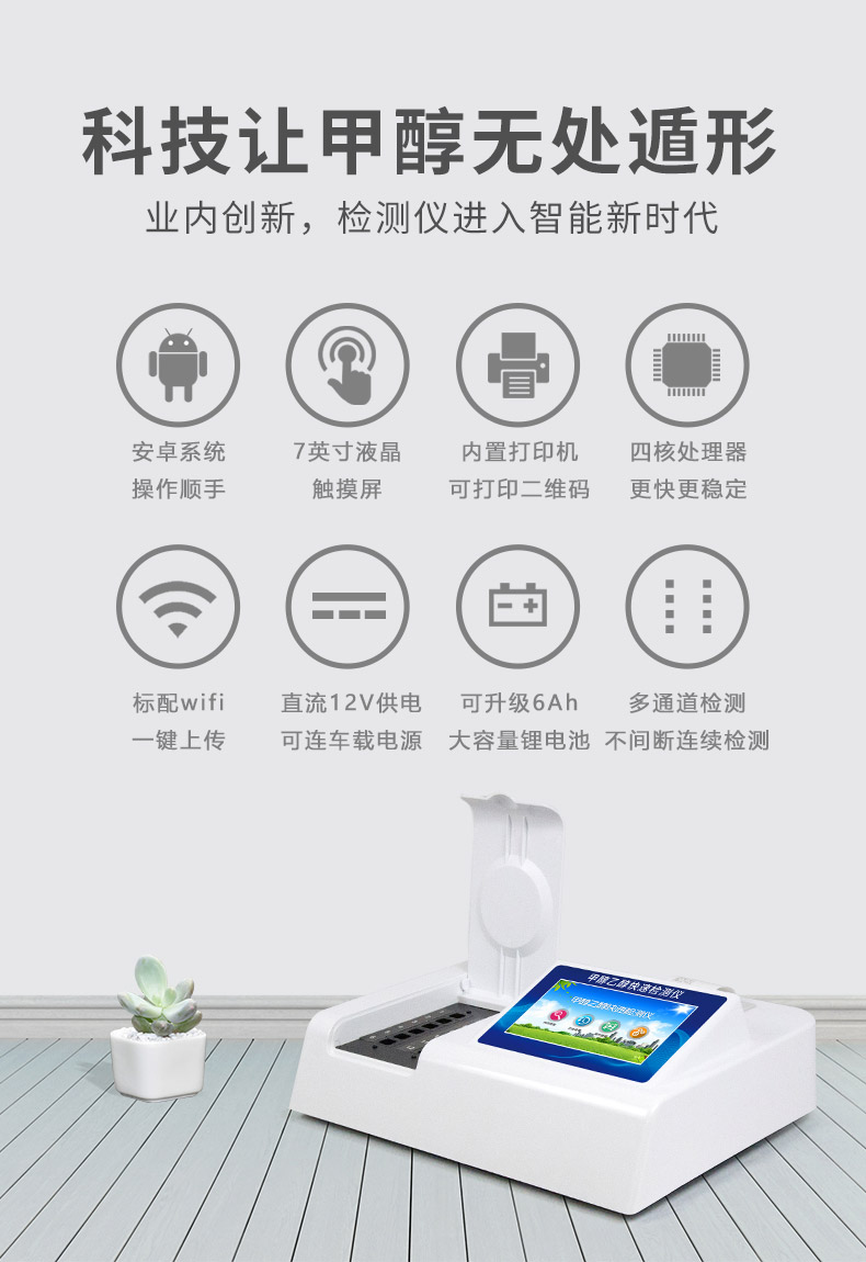 檢測項(xiàng)目:可快速定量檢測各類酒中的甲醇和乙醇的含量,儀器預(yù)留其他項(xiàng)目檢測程序和端口,根據(jù)日后需求可方便的自主增加檢測項(xiàng)目。日后可升級為檢測,水產(chǎn)品,肉制品,面制品的綜合類型儀器。