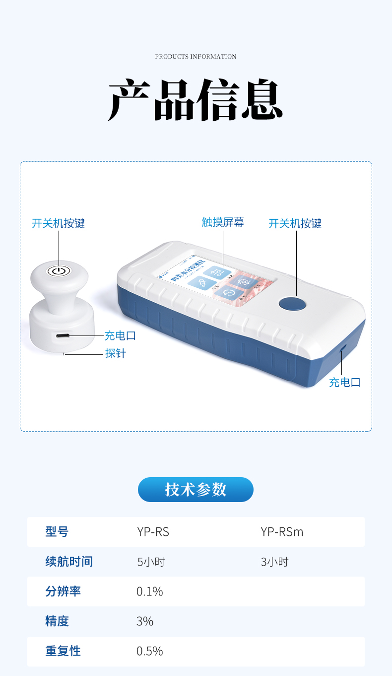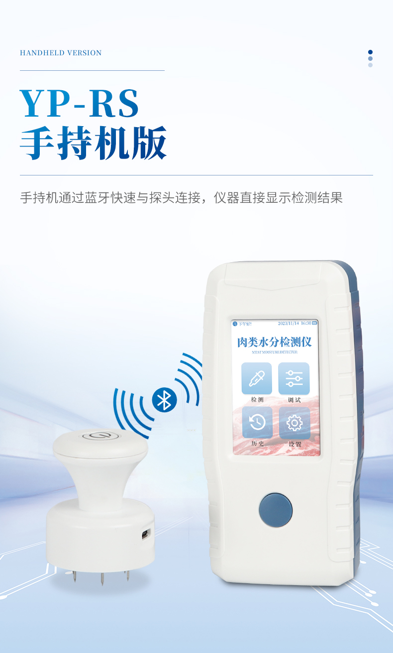 肉類含水量測(cè)定儀通過向樣品注入高頻電信號(hào)并接收回波測(cè)量生肉含水量,相比GB18394-2020國標(biāo)文件中的5.2節(jié)紅外線干燥法(快速法)更快速便捷,具有不需要制備樣品,檢測(cè)迅速,操作方便的優(yōu)點(diǎn)。