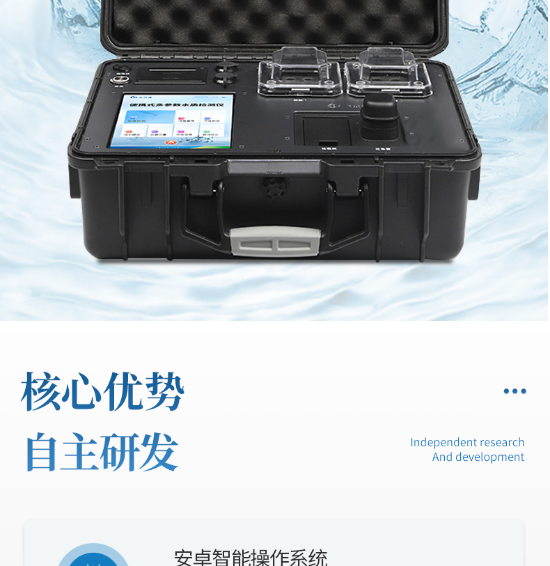 YP-BZ型便攜式多參數(shù)重金屬檢測儀采用高強(qiáng)度PVC工程塑料手提箱設(shè)計(jì),消解檢測一體式設(shè)計(jì),其中消解模塊具備雙溫區(qū)功能,檢測部分同時(shí)具備360°旋轉(zhuǎn)比色管檢測和比色皿檢測,安卓智能操作系統(tǒng),8英寸高清液晶觸摸屏,光纖檢測技術(shù),進(jìn)口光源,內(nèi)置大容量鋰電池,便攜多參數(shù)水質(zhì)檢測儀具有性能穩(wěn)定、測量準(zhǔn)確、測定范圍廣、功能強(qiáng)大、操作簡單等特點(diǎn)。