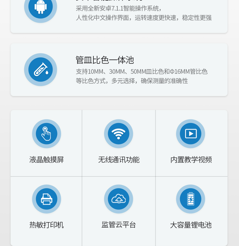 2、雙比色檢測系統(tǒng),同時(shí)支持預(yù)制試管比色和比色皿比色;
